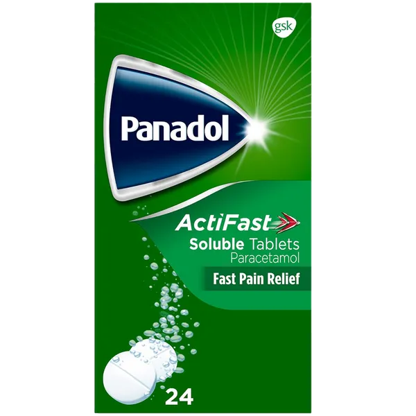 Panadol Actifast Soluble Tablets contain 500mg of paracetamol per tablet and are designed for fast action, thanks to their soluble formulation. When mixed in water, the tablet dissolves into a drinkable solution that’s absorbed rapidly, providing pain relief in as little as 10–15 minutes.
